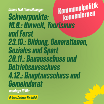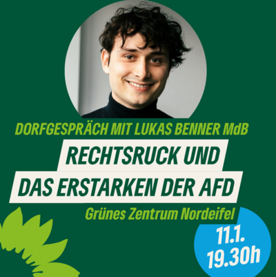 Wir laden herzlich zum nächsten Dorfgespräch am 11. Januar im Grünen Zentrum Nordeifel mit unserem Bundestagsabgeordneten Lukas Benner ein. Lukas wird…